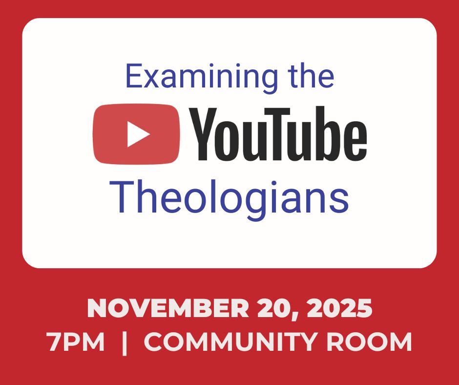 Join us in the Community Room every 3rd Thursday at 7:00pm. The next study is on September 18, 2025.Dive deep into internet Christianity, culture, and theology — through a Lutheran lens. Led by Steve Skiver, this is your chance to challenge and be challenged in an open, faith-based discussion. All ages welcome. Bring your brain and your Bible. Let’s explore how media meets theology!