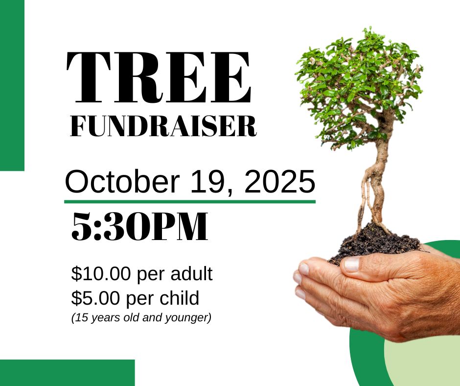 Join us on Sunday, October 19, 2025, at 5:30 PM for an all-you-can-eat pasta bar with dessert! Entry is just $10 for adults and $5 for children 15 and under. All proceeds will go toward replacing the trees along the south side of the church parking lot. Come enjoy a delicious meal and support a great cause!
